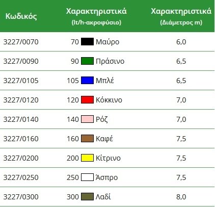 Χρωματικά κωδικοποιημένα ακροφύσια για εύκολη αναγνώριση παροχής.