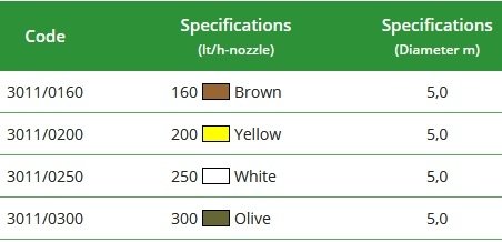 Σταθερό μπεκ με μικρή επιφάνεια άρδευσης, με μεγάλες σταγόνες και δυναμική λειτουργία.