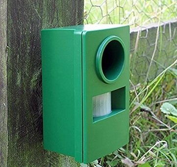 Απωθητική συσκευή με υπέρηχους για γάτες και μικρόσωμους σκύλους. Η μονάδα ανιχνεύει κίνηση και εκπέμπει έναν ηχητικό ήχο υψηλής συχνότητας που ερεθίζει τις γάτες και έτσι απομακρύνονται από τους προστατευμένους χώρους του κήπου. Η κίνηση μπορεί να ανιχνευθεί μέχρι και 12 μέτρα (39 πόδια) μακριά, δημιουργώντας μια προστατευόμενη περιοχή περίπου 100 τ.μ.