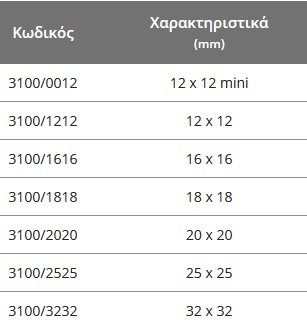 12Χ12,16Χ16,18Χ18,20Χ20,25Χ25,32Χ32